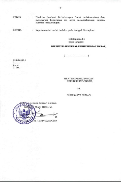 KEDUA              :  Direktur  Jenderal  Perhubungan  Darat  melaksanakan  dan