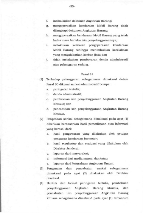 f.    memalsukan dokumen Angkutan Barang;
