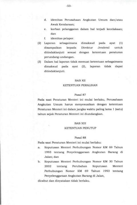 a. Keputusan Menteri Perhubungan Nomor KM 69 Tahun