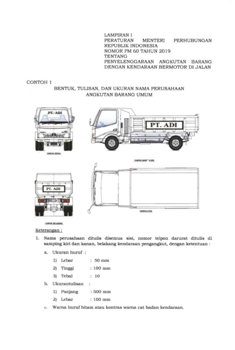 samping kiri dan kanan, belakang kendaraan pengangkut, dengan ketentuan :