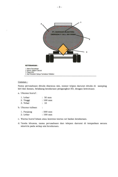 kiri dan kanan, belakang kendaraan pengangkut B3, dengan ketentuan: