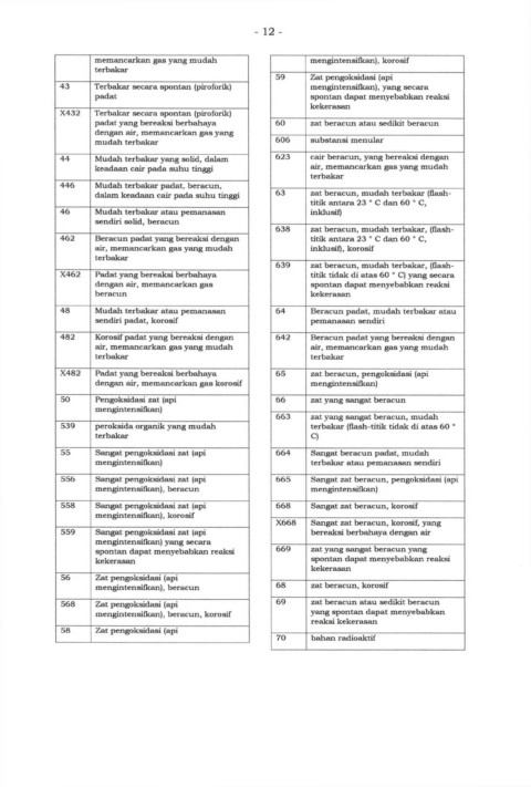 558     Sangat pengoksidasi zat (api             668     Sangat zat beracun, korosif