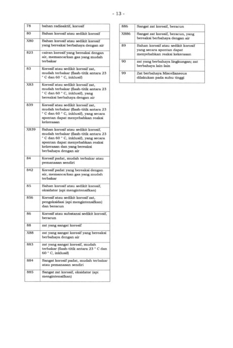 80 Bahan korosif atau sedikit korosif X886 Sangat zat korosif, beracun, yang