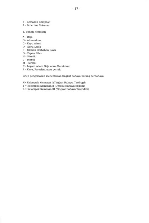 Z = Kelompok Kemasan III (Tingkat Bahaya Terendah)