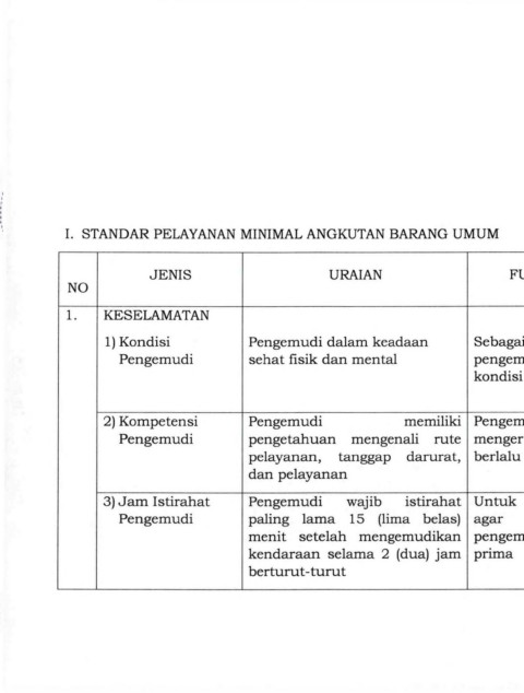 I. STANDAR PELAYANAN MINIMAL ANGKUTAN BARANG UMUM