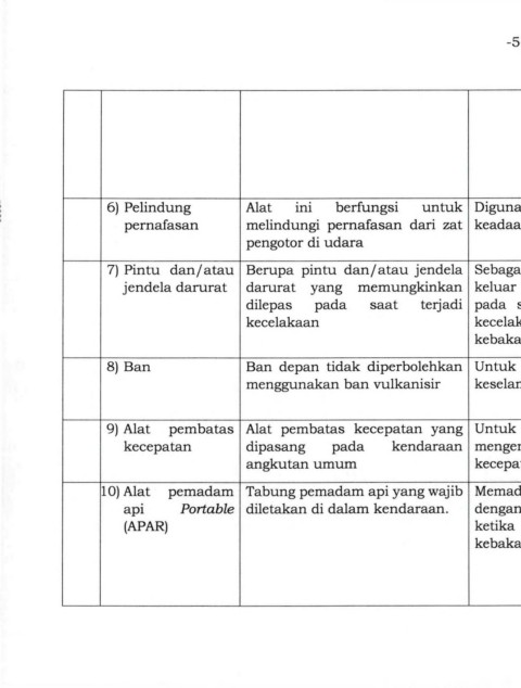 10) Alat pemadam Tabung pemadam api yang wajib Memadamkan api Ketersediaan Paling sediki 1 (satu)