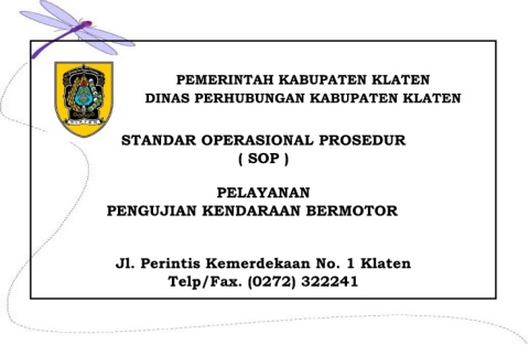 PEMERINTAH KABUPATEN KLATEN DINAS PERHUBUNGAN KABUPATEN KLATEN STANDAR OPERASIONAL PROSEDUR ( SOP ) PELAYANAN PENGUJIAN KENDARAAN BERMOTOR Jl. Perintis Kemerdekaan No. 1 Klaten Telp/Fax. (0272) 322241
