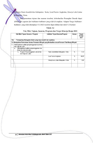 indikator Rasio konektivitas Kabupaten / Kota, Load Factor Angkutan, Kinerja Lalu Lintas