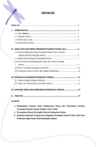 II. HASIL EVALUASI RENJA PERANGKAT DAERAH TAHUN LALU .................... 5