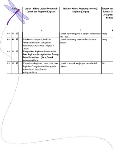 Indikator Kinerja Program (Outcome) / Kegiatan (Output) 3 jumlah pemenang pelajar pelopor keselamatan lalu lintas jumlah pemenang awak kendaraan umum teladan jumlah bus untuk menjemput pemudik dari Jakarta