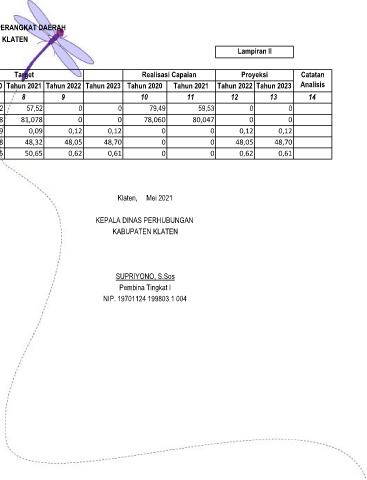 Nama Perangkat Daerah : Dinas Perhubungan Kabupaten Klaten