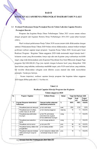 2.1 Evaluasi Pelaksanaan Renja Perangkat Daerah Tahun Lalu dan Capaian Renstra