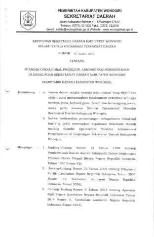 KEPUTUSAN SEKRETARIS DAERAH KABUPATEN WONOGIRI