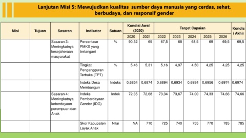Lanjutan Misi 5: Mewujudkan kualitas sumber daya manusia yang cerdas, sehat,