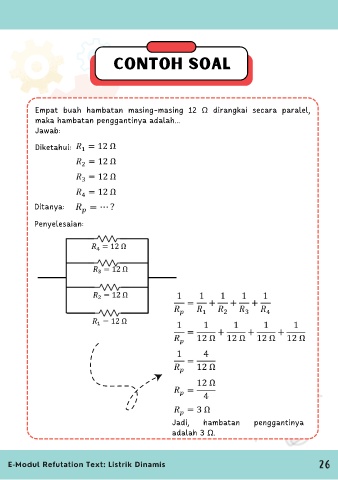 Empat buah hambatan masing-masing 12 Ω dirangkai secara paralel,
