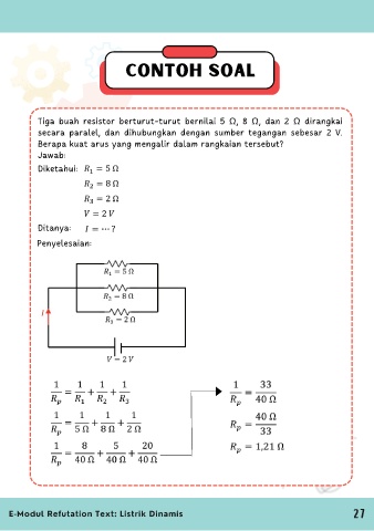 Tiga buah resistor berturut-turut bernilai 5 Ω, 8 Ω, dan 2 Ω dirangkai
