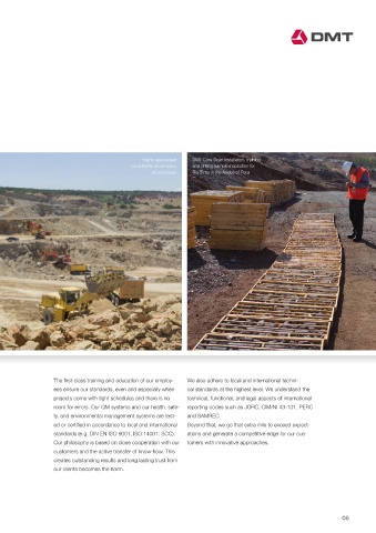 DMT services include the creation of studies and as- We determine raw material resources and reserves The first-class training and education of our employ- We also adhere to local and international techni-