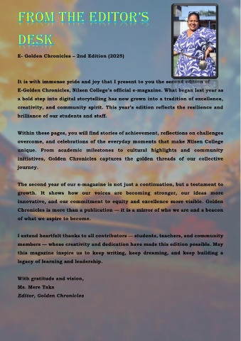 E-Golden Chronicles, Nilsen College’s official e-magazine. What began last year as