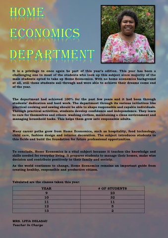 skills needed for everyday living. It prepares students to manage their homes, make wise