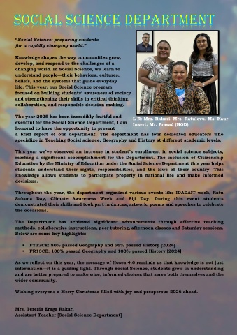 eventful for the Social Science Department, I am Insert: Mr. Prasad (HOD)