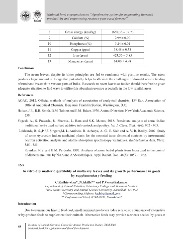 of ruminant livestock in various parts of India. Research on neem leaves as fodder should therefore be given