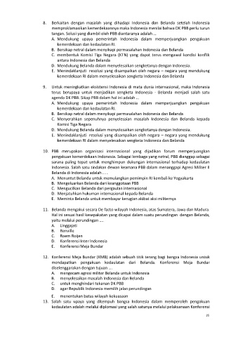 8. Berkaitan dengan masalah yang dihadapi Indonesia dan Belanda setelah Indonesia