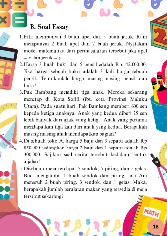 4. Di sebuah toko A, harga 5 baju dan 3 sepatu adalah Rp