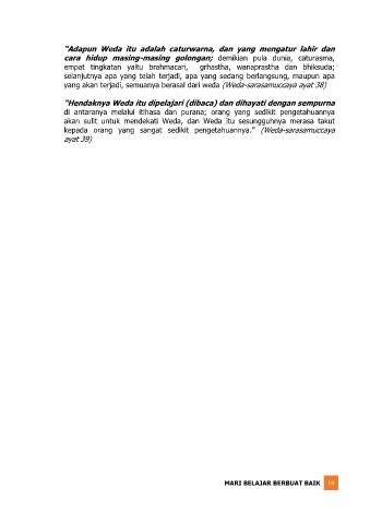 “Adapun  Weda  itu  adalah  caturwarna,  dan  yang  mengatur  lahir  dan
