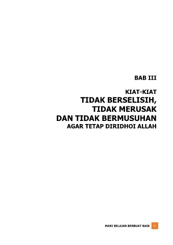 BAB III KIAT-KIAT TIDAK BERSELISIH, TIDAK MERUSAK DAN TIDAK BERMUSUHAN AGAR TETAP DIRIDHOI ALLAH MARI BELAJAR BERBUAT BAIK 31
