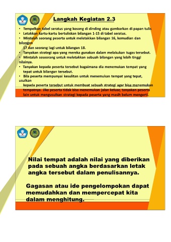 • Letakkan kartu-kartu bertuliskan bilangan 1-15 di tabel seratus.
