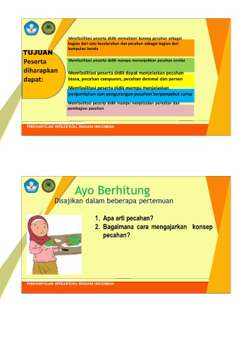diharapkan Memfasilitasi peserta didik dapat menjelaskan pecahan