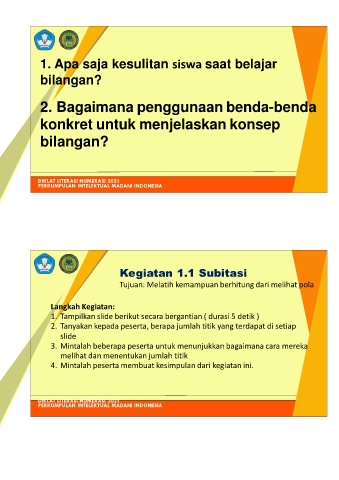 2. Tanyakan kepada peserta, berapa jumlah titik yang terdapat di setiap