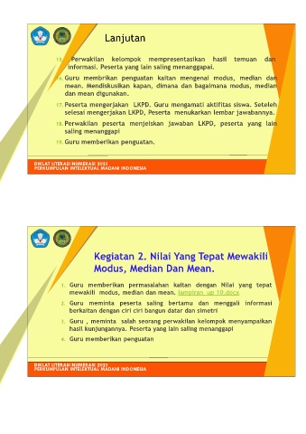 16. Guru membrikan penguatan kaitan mengenai modus, median dan