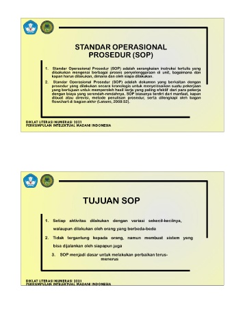 1. Standar Operasional Prosedur (SOP) adalah serangkaian instruksi tertulis yang