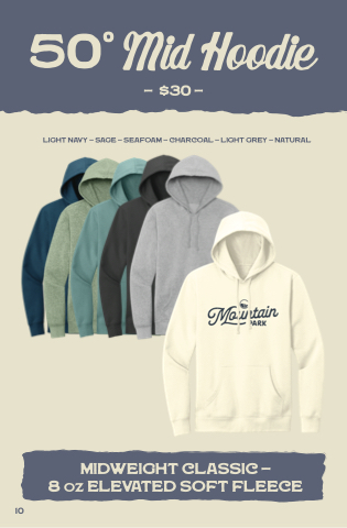 50˚ Mid Hoodie - $30 - light navy - sage - seafoam - charcoal - light grey - natural Midweight Classic - 8 oz Elevated Soft Fleece 10