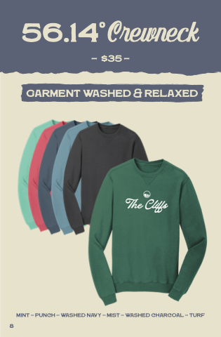 56.14˚ Crewneck - $35 - Garment Washed & relaxed mint - punch - washed navy - mist - washed charcoal - turf 8