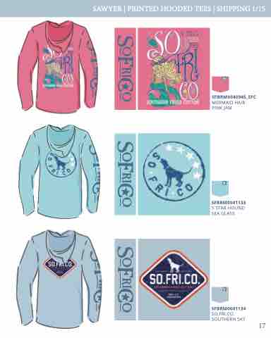 SAWYER | PRINTED HOODED TEES | SHIPPING 1/15 SFBRM0040945_SFC MERMAID HAIR PINK JAM SFBRM0041133 5 STAR HOUND SEA GLASS SFBRM0041134 SO.FRI.CO. SOUTHERN SKY 17