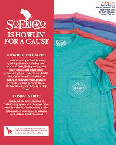animal shelters, fishing and outdoor preservations, and breast cancer prevention groups. Look for our Howlin’ for a Cause Hound throughout the catalog to designate which products’ proceeds are donated back! Thanks for howlin’ along and helping us help others!