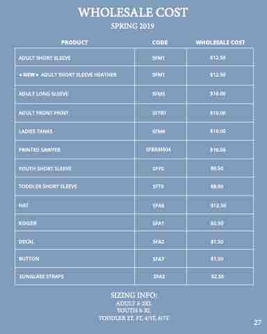 SIZING INFO: ADULT S-2XL YOUTH S-XL TODDLER 2T, 3T, 4/5T, 6/7T