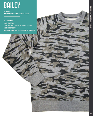 SFBRW011 WOMEN'S CREWNECK FLEECE CLASSIC FIT 100% COTTON LIGHTWEIGHT FRENCH TERRY FLEECE SIDE SPLIT SEAM DECORATED WITH SCREEN PRINT DESIGN 21 SO.FRI.CO. WOMEN’S FLEECE