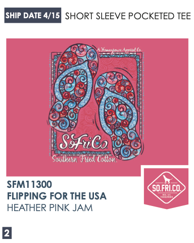SHIP DATE 4/15 SHORT SLEEVE POCKETED TEE SFM11300 FLIPPING FOR THE USA HEATHER PINK JAM 2