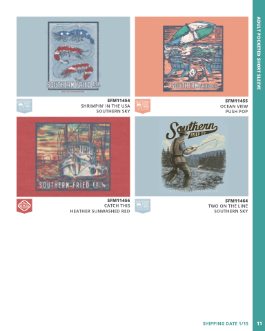 ADULT POCKETED SHORT SLEEVE SHIPPING DATE 1/15 11 SFM11454 SHRIMPIN’ IN IN THE THE USA SOUTHERN SKY SFM11455 OCEAN VIEW PUSH POP SFM11456 CATCH THIS HEATHER SUNWASHED RED SFM11464 TWO ON THE THE LINE SOUTHERN SKY