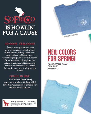 Look for for our Howlin for for a a Cause Hound throughout the catalog to designate which products’ proceeds are donated back! NEW COLORS for Spring!