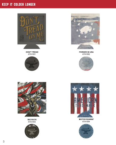 KEEP IT COLDER LONGER 5 DON’T TREAD ATA1001 FORGED IN USA ATA1002 BIG BUCK ATA1003 MOTOR RUNNIN’ ATA1004