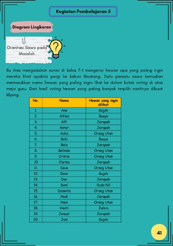 meja guru. Dari hasil voting hewan yang paling banyak terpilih nantinya dibuat