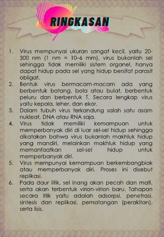 1. Virus mempunyai ukuran sangat kecil, yaitu 20-