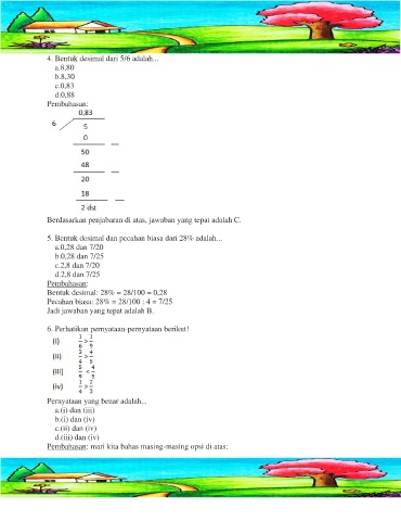 5. Bentuk desimal dan pecahan biasa dari 28% adalah...