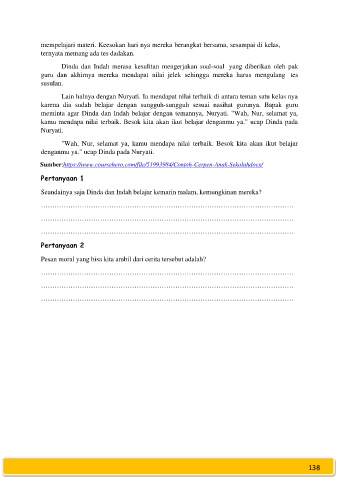 meminta agar Dinda dan Indah belajar dengan temannya, Nuryati. "Wah, Nur, selamat ya,