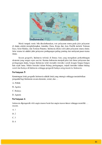 Suez, Selat Malaka, dan Terusan Panama. Indonesia dilalui oleh jalur pelayaran utama dunia.