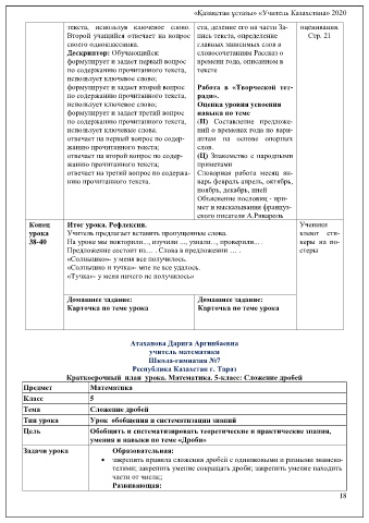 Краткосрочный план урока. Математика. 5-класс: Сложение дробей